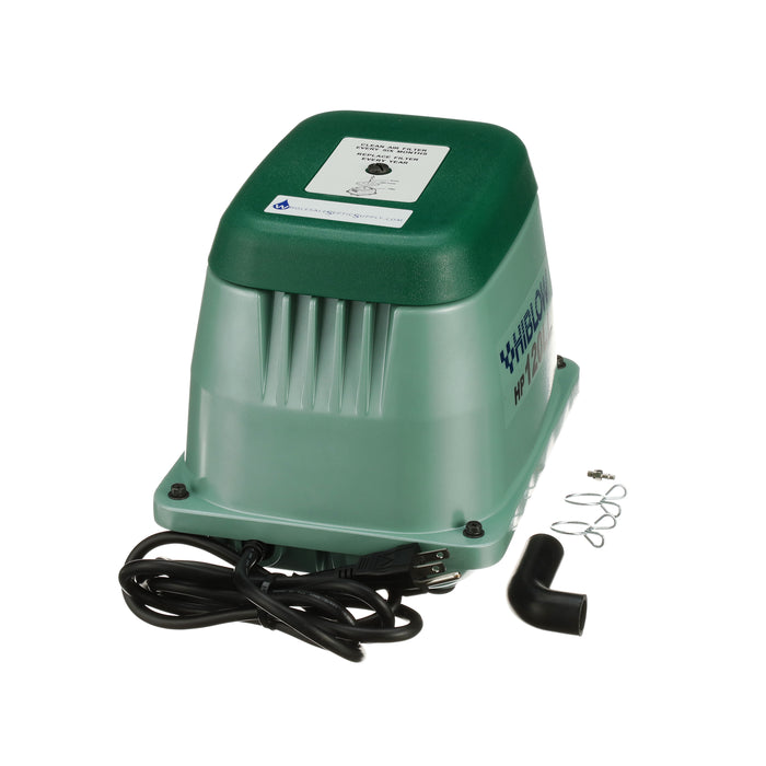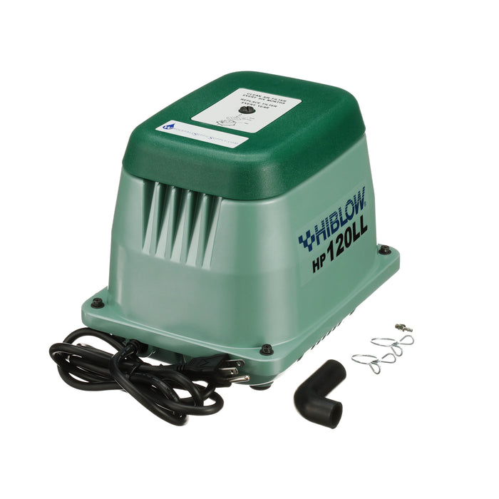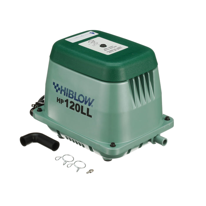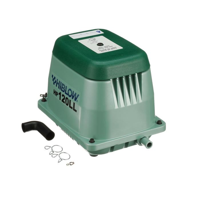 The Hiblow HP120LL septic air pump. This new design has major improvements with longer lasting diaphragms over the old HP-120 model. The Hiblow HP-120LL fits all 750 Gallon Per Day units. They also fit various 1000 gpd aerobic septic systems. This pump is also very energy efficent drawing less amps than comparable units.