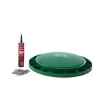 This kit includes a 16" diameter riser, a secure cover, and the necessary installation hardware. Each component is constructed from heavy-duty, UV-resistant polyethylene, built to handle outdoor exposure, moisture, and soil contact without rusting or corroding. The fitted cover creates a secure seal to help prevent water intrusion and limit unauthorized access.