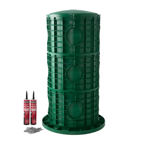 16" diameter, 38" high septic tank riser kit with cover. Heavy-duty, UV-resistant polyethylene. Includes hardware for deep-set system access.
