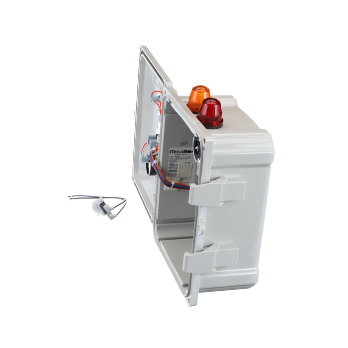 conditions. There is a piezo electric buzzer in the door of the enclosure.