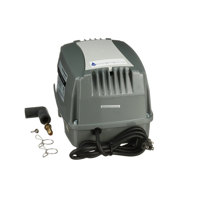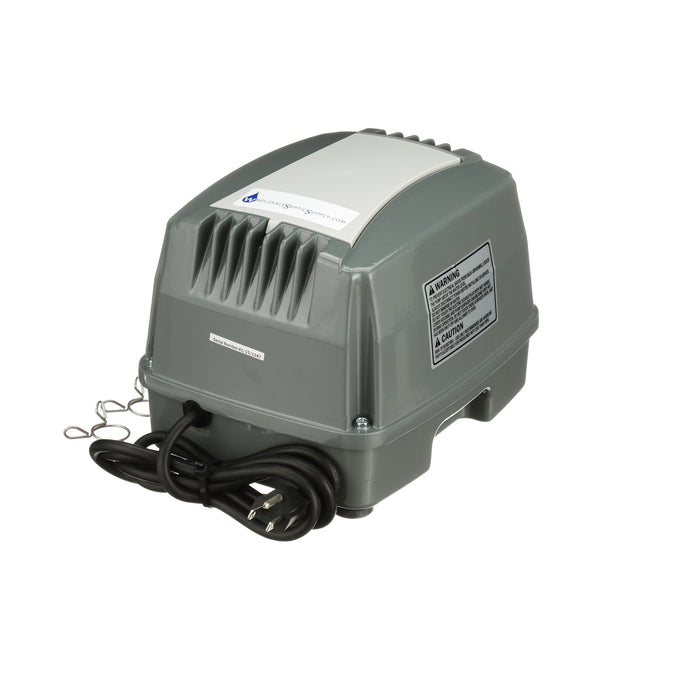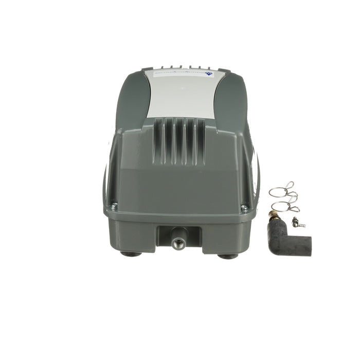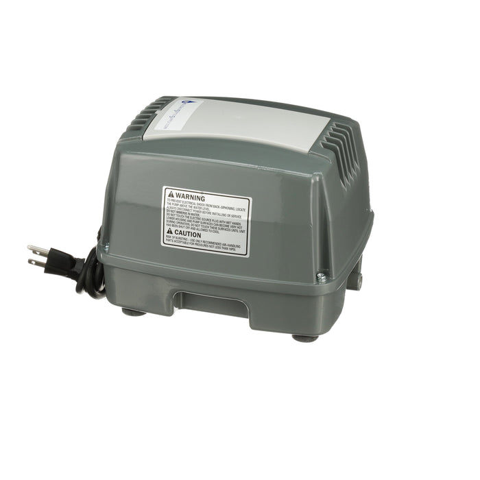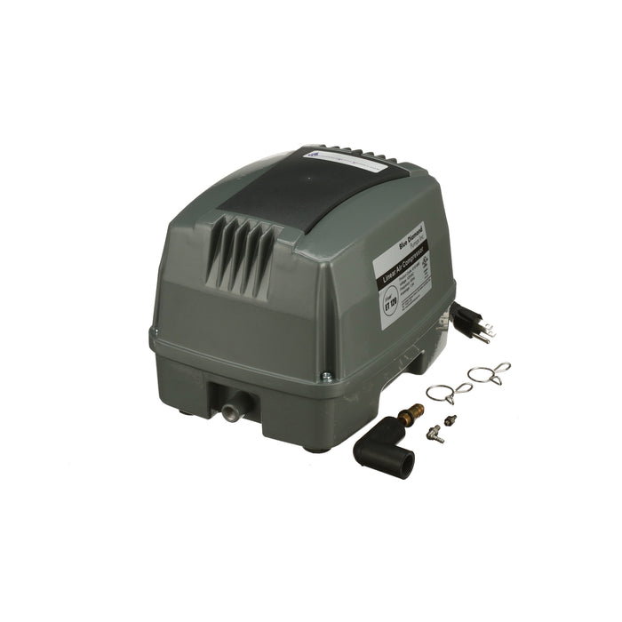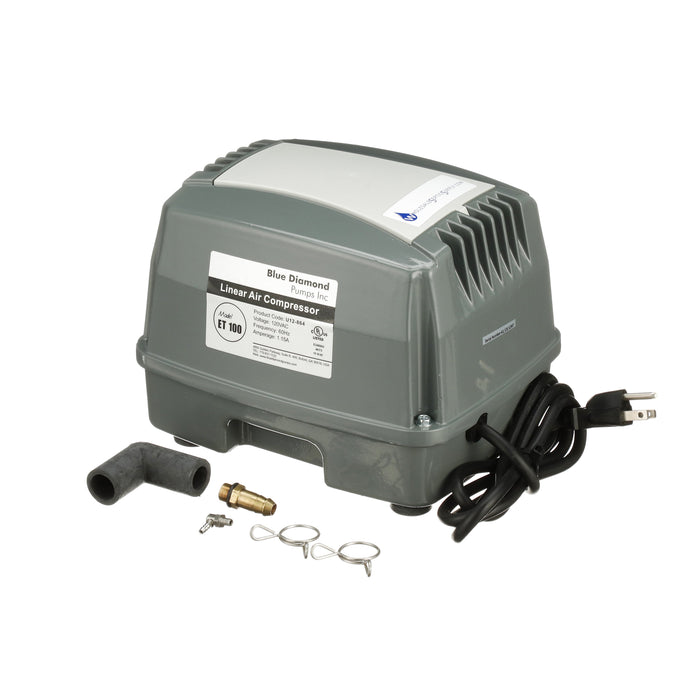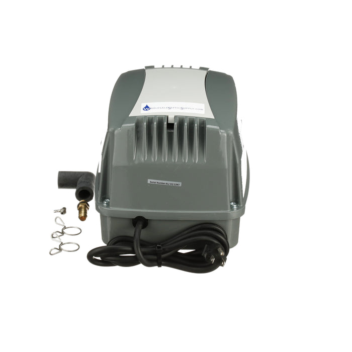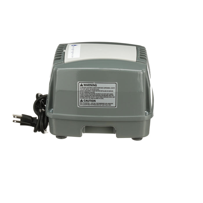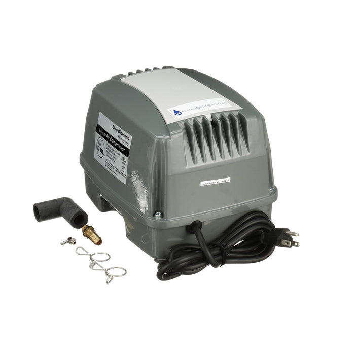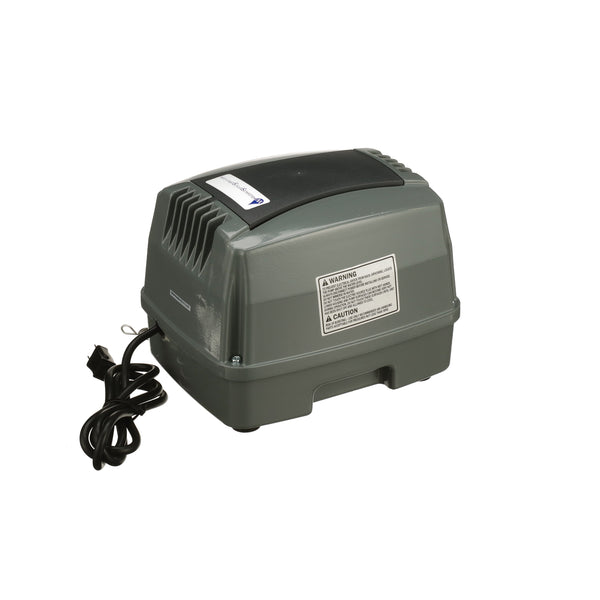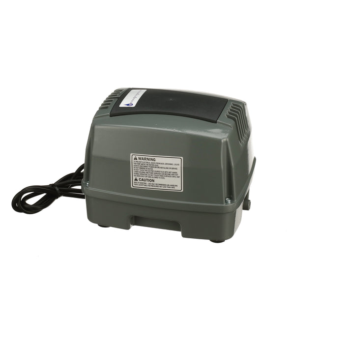 The Blue Diamond ET120 produces 120 liters of air per minute, guaranteeing your aerobic septic system will effectively manage waste. As oxygen pumps into your wastewater, it will break down waste into manageable bits and help the waste destroying bacteria in the tank thrive. The Blue Diamond ET120’s high flow rate will increase levels of oxygen in your wastewater and keep your drainage clear, reducing the amount of effluent that drains from your septic system. This air pump has no wearing parts, so you can be sure that the air pump is operating at peak efficiency without sacrificing performance. These specific pumps are not to be used on ponds over 5 foot in depth as the back pressure will ruin them, as it is not good for them.