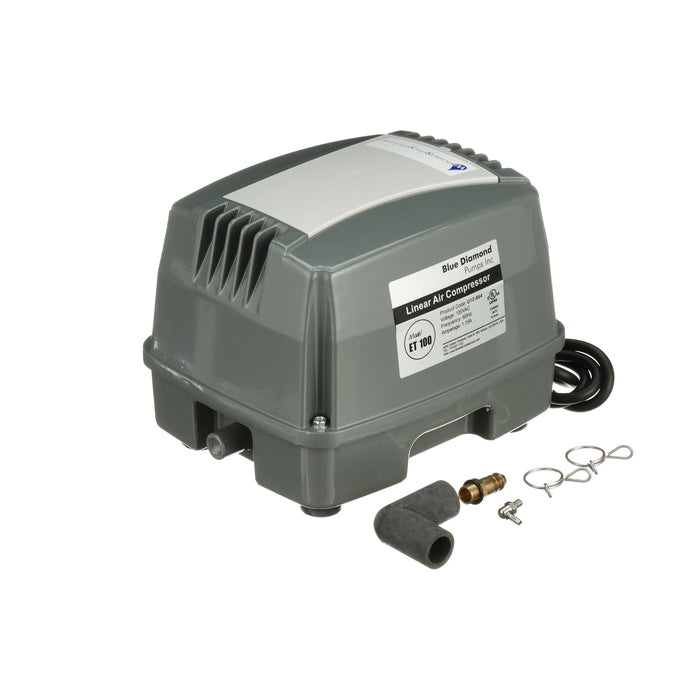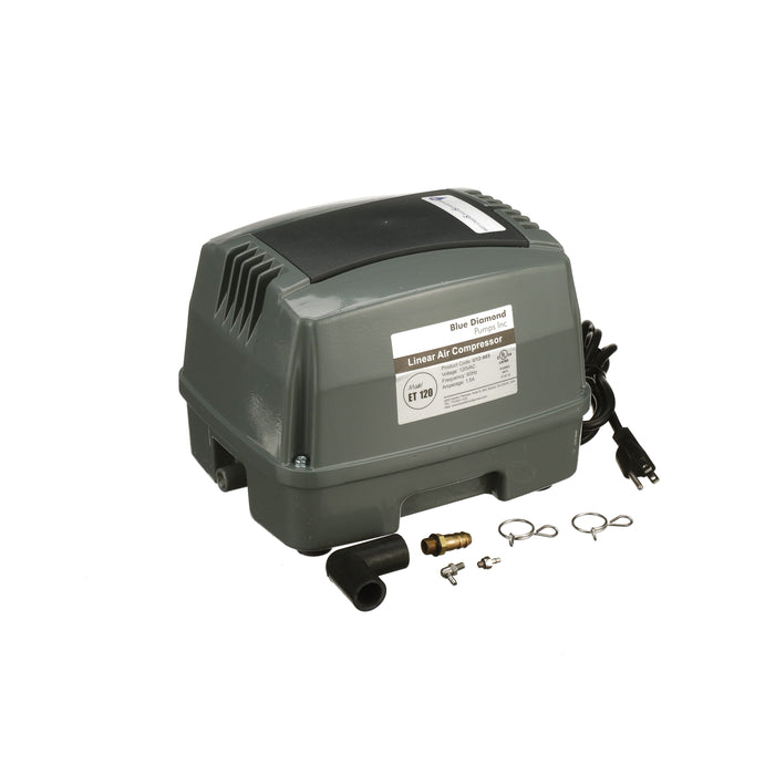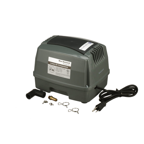 With a high air flow and robust construction, this air pump is a great air pump for those who need a 100 series aerator. If you need a new aerator, this septic air pump will give you high quality for your money. The Blue Diamond ET120 is recommended due to its quality performance, low power consumption, and durability.