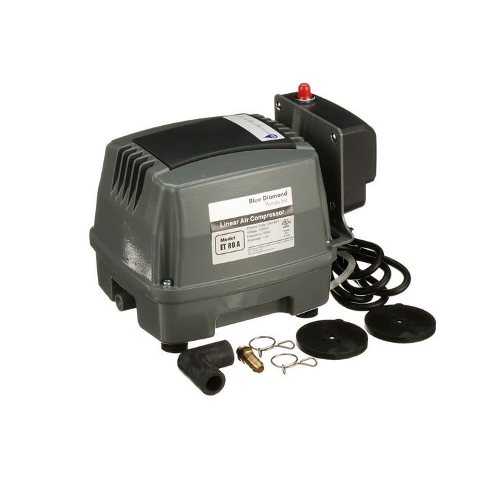 The Blue Diamond ET80A utilizes green drive technology to lower its power consumption to as little as 85 watts. Feel confident that this air pump is saving energy while helping the environment by reducing effluent.