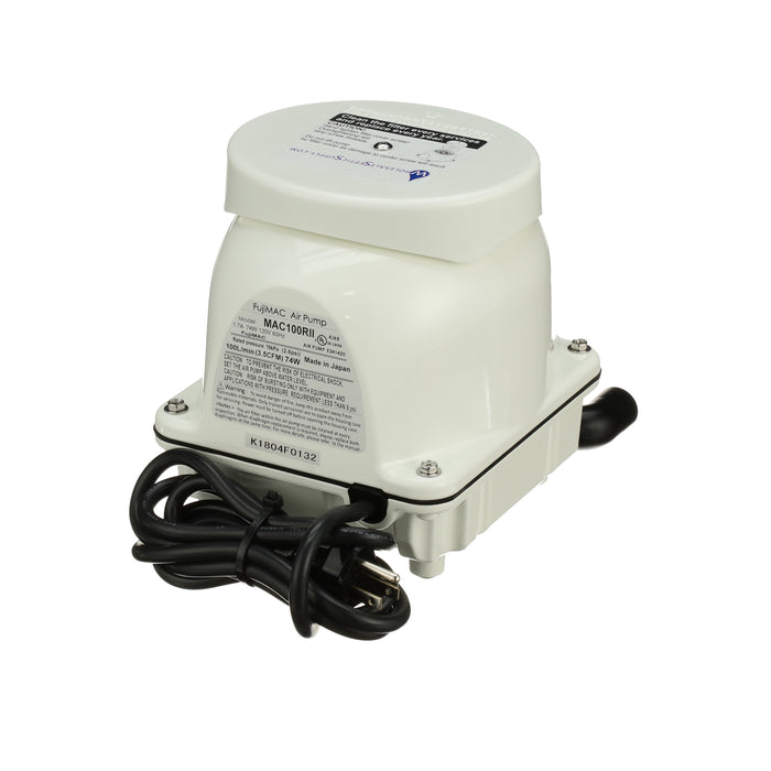 The FujiMAC 100R2 Septic Air Pump is a reliable linear diaphragm pump designed for aerobic wastewater treatment systems. Delivering a rated airflow of 100 L/min, it provides consistent oxygenation to support effective wastewater processing in residential and light commercial applications.