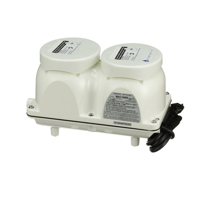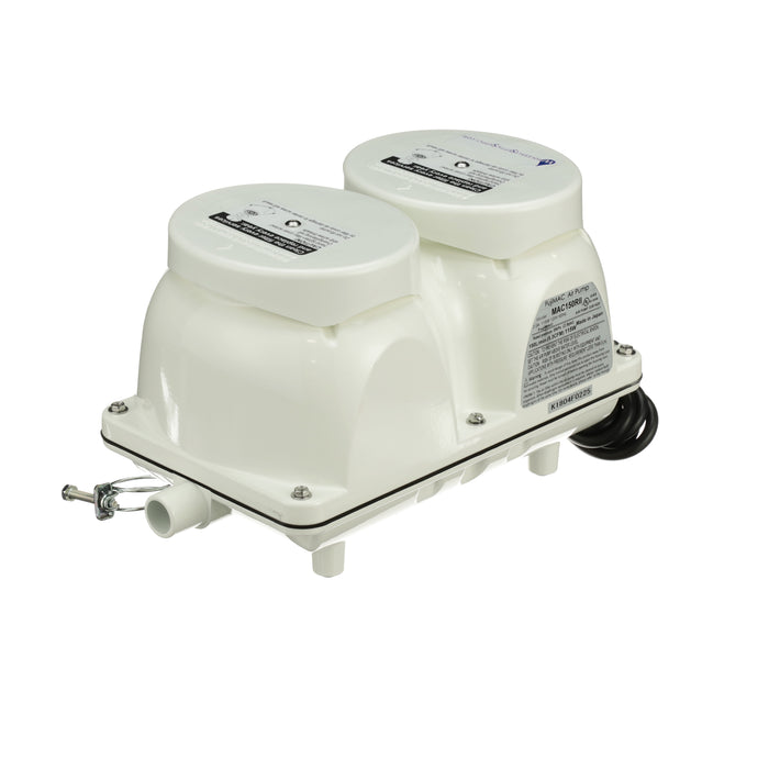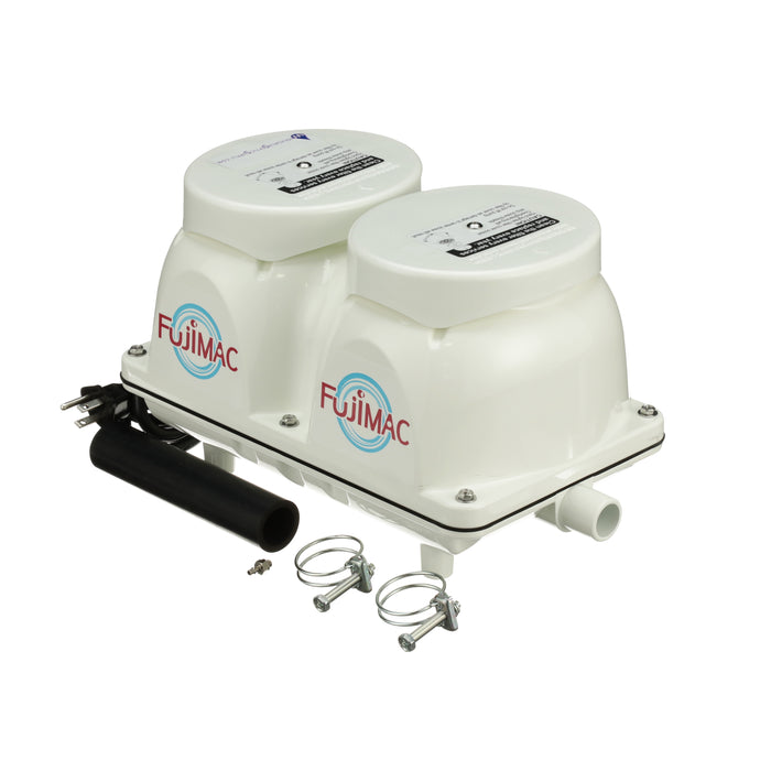 The FujiMAC 200R2 Septic Air Pump is a high-output linear diaphragm pump designed for large aerobic wastewater treatment systems. Built for durability and consistent performance, it delivers a rated output of 200 L/min to provide the oxygenation needed for effective treatment in residential, commercial, and light industrial applications.