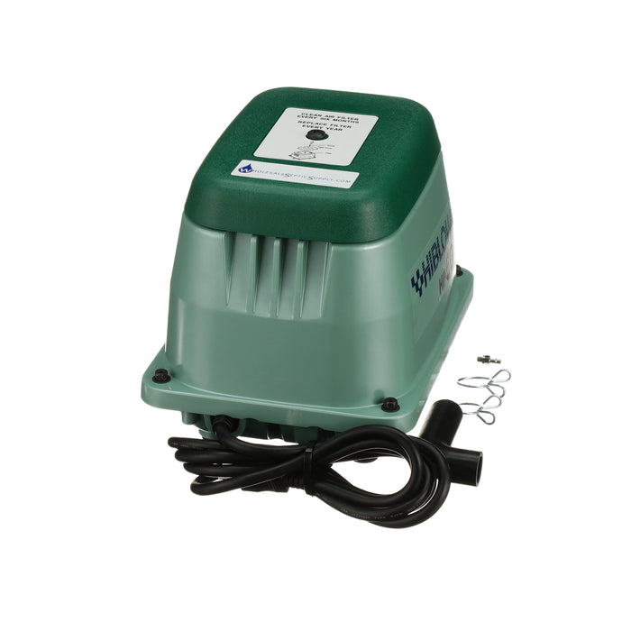 The Hiblow HP-80 Aerator is a compact and efficient air pump designed for use in aeration systems, such as those in septic tanks, wastewater treatment plants, and pond aeration.
