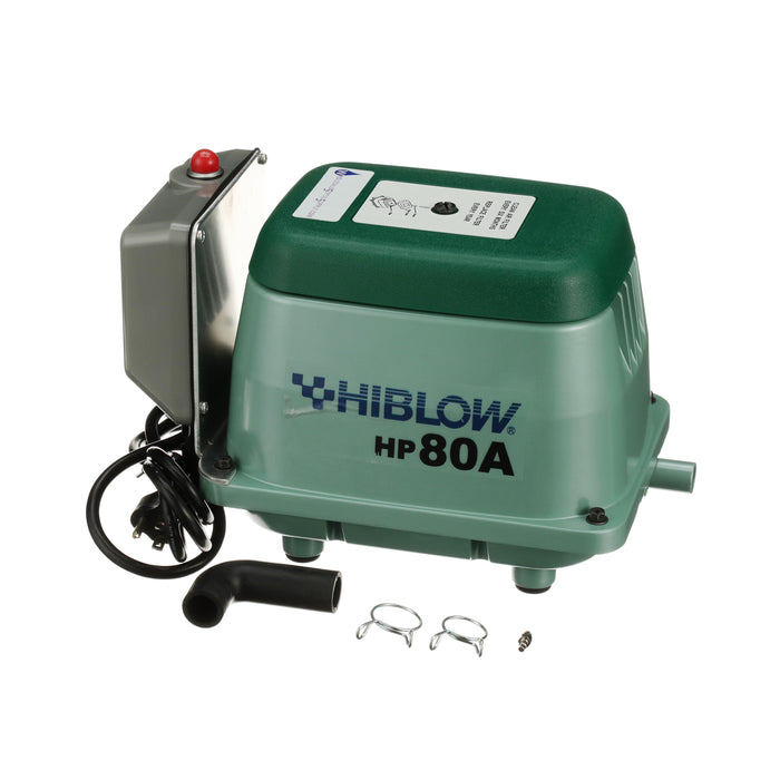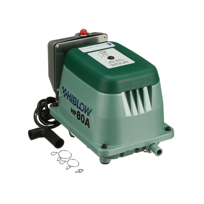 • The Hiblow HP80 013A is the most commonly used septic air pump used in an aerobic septic system.Most systems are 500 to 600 GPD systems and need an 80 liter per minute septic air pump to process that amount that is the meaning of the 80 in the pump model.The Hiblow is the lifeline that makes the system aerobic by pumping air into the system and providing dissolved oxygen (D.O) to the bacteria that break down all the waste in the system.Without it, the system does not work correctly, and the systems water quality is inferior. It is what makes the water that comes out not smell like raw sewage when it is discharged from the system.