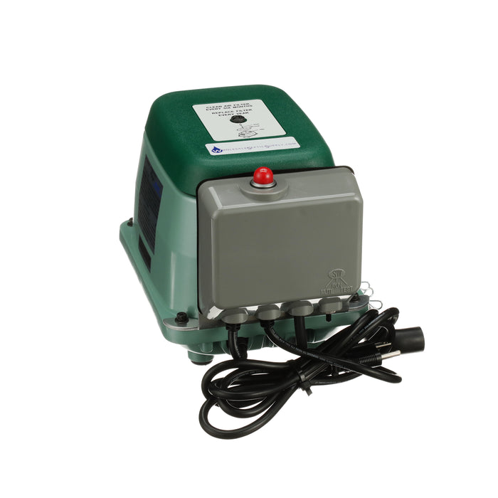 The Hiblow HP-80-017A Septic Air Pump is the most commonly used septic air pump used in an aerobic septic system.Most systems are 500 to 600 GPD systems and need an 80 liter per minute septic air pump to process that amount that is the meaning of the 80 in the pump model.The Hiblow is the lifeline that makes the system aerobic by pumping air into the system and providing dissolved oxygen (D.O) to the bacteria that break down all the waste in the system.Without it, the system does not work correctly, and the systems water quality is inferior. It is what makes the water that comes out not smell like raw sewage when it is discharged from the system.