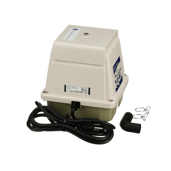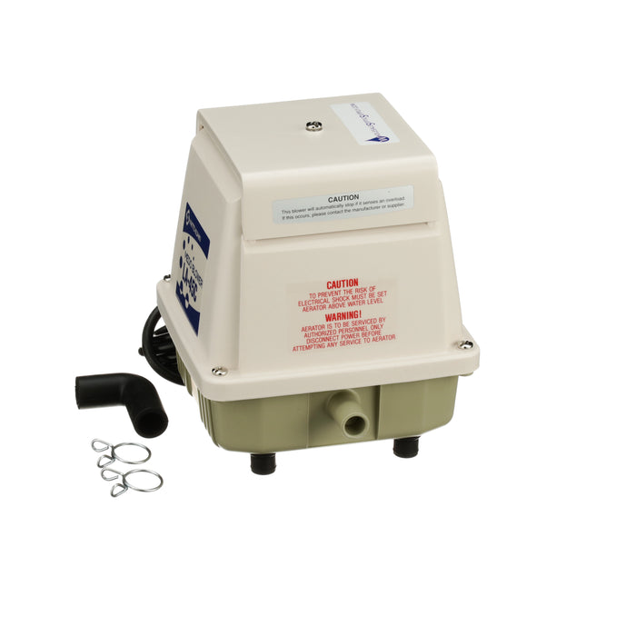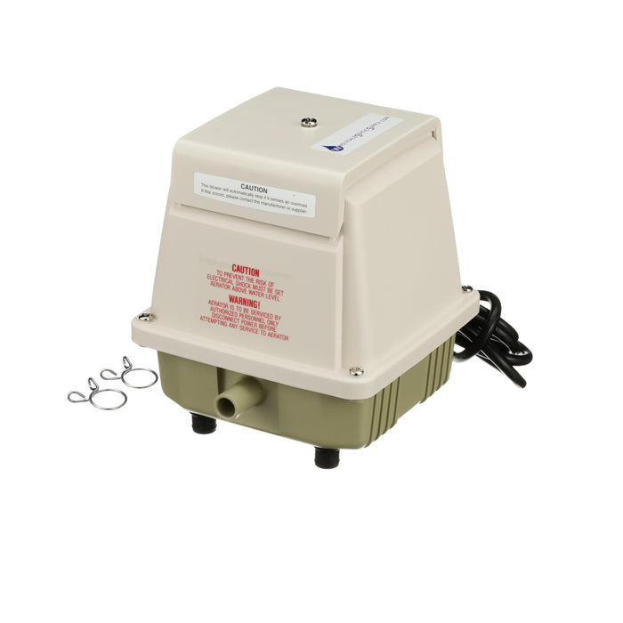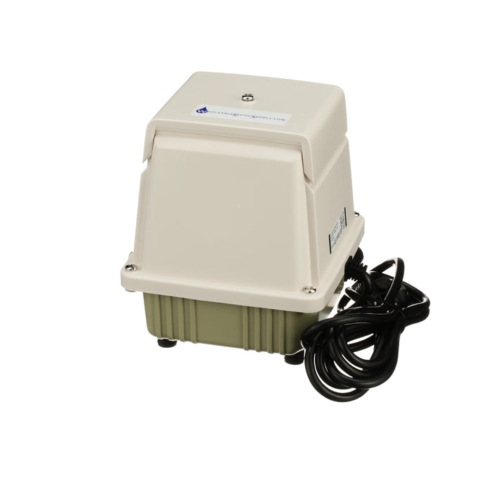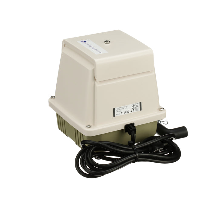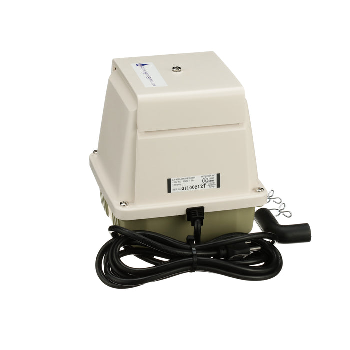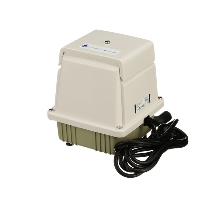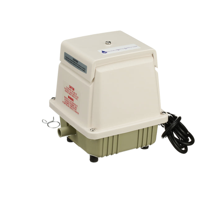 Designed to self-adjust when the pressure exceeds the rated value of the pump, the piston stroke will automatically shorten to reduce the strain on the pump. At the same time, the power consumption of the pump will decrease to protect against possible increasing temperatures. This is a definite advantage as diffusers can start to become clogged without the homeowner being aware of it. This sturdy pump has a life expectancy of 5-9 years with proper installation and maintenance. The self-cooling design draws more cooling intake air over the coils reducing the temperature seen on the interior of the pump, further extending the life of the unit. Maintenance on the pump is relatively easy. Clean the filter, as required. This oil-less design does not need additional lubrication.