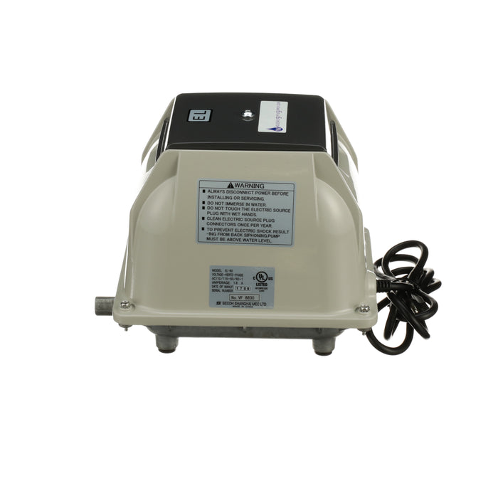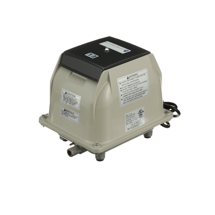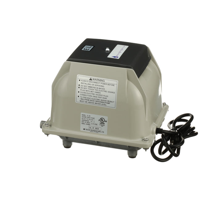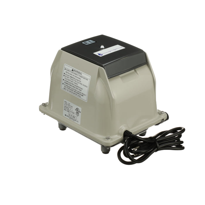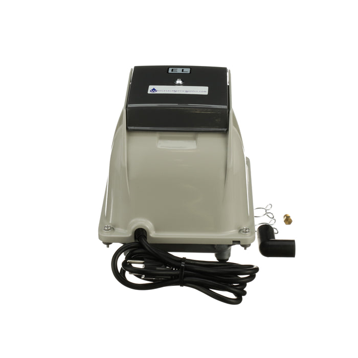 **Secoh discontinued the EL-60 model and replaced it with their new and improved JDK-60 model. Please follow the link below to purchase the upgraded model, made by the same manufacturer!** The EL-60 is no longer in stockThe Secoh EL-60 also features a long life, often running for 5-6 years before any maintenance or repairs are required, and lasting as long as 10-12 years if required maintenance and repairs are performed. Due to the quality, longevity, and efficiency of the Secoh EL-60 Septic Air Pump, it is considered top of its class. This model features a six-foot power cord which can be hard-wired into a control panel and air barb for alarm hose connection capabilities. This Secoh EL-60 Septic Air Pump is intended as a replacement for an existing damaged or non-functioning Secoh El-60 Septic Air Pump. If your system requires more complex repairs than the replacement of the air pump, we suggest contacting a professional.