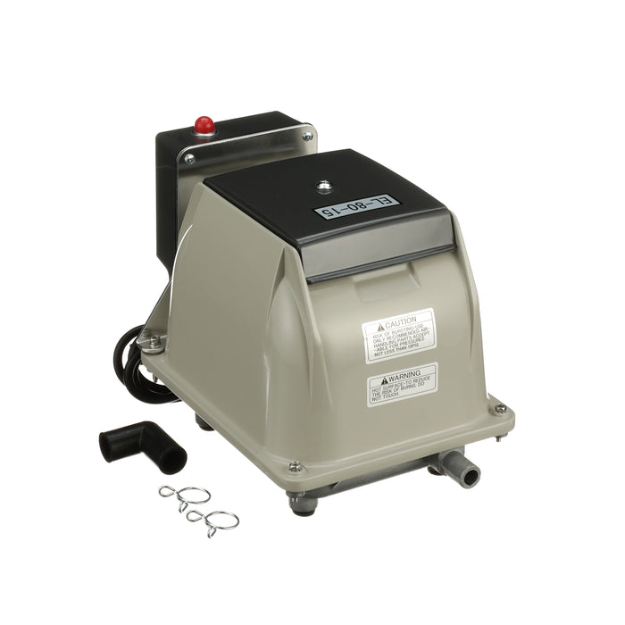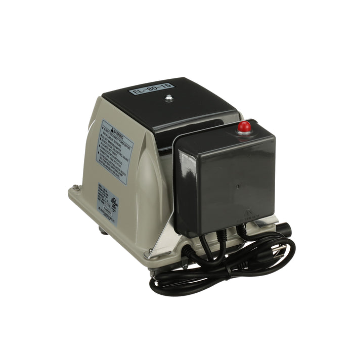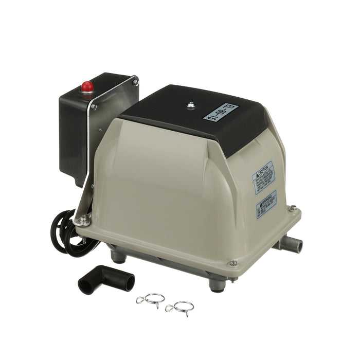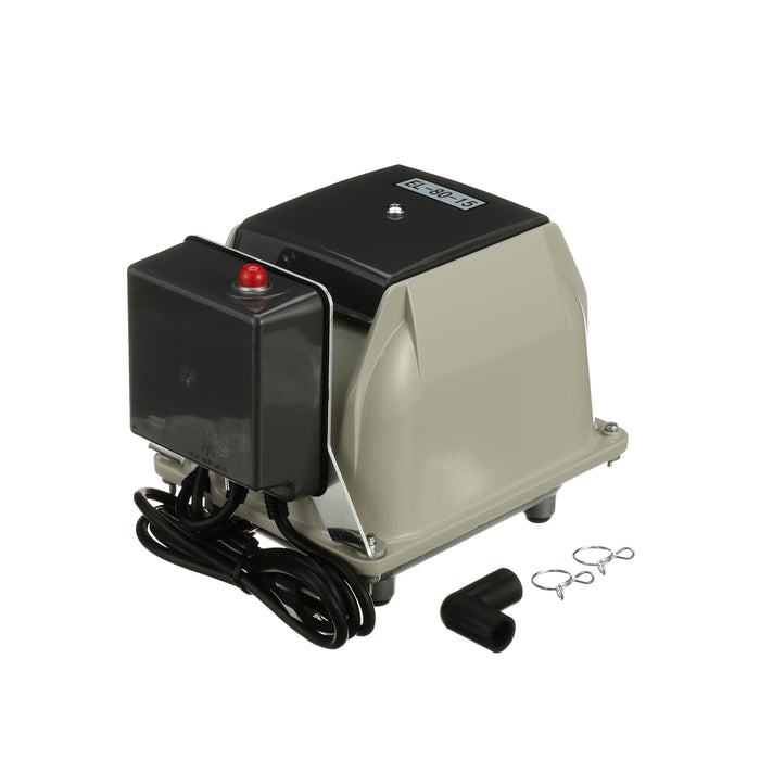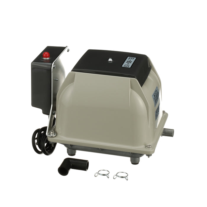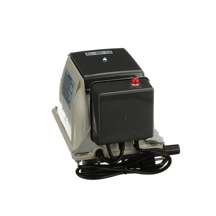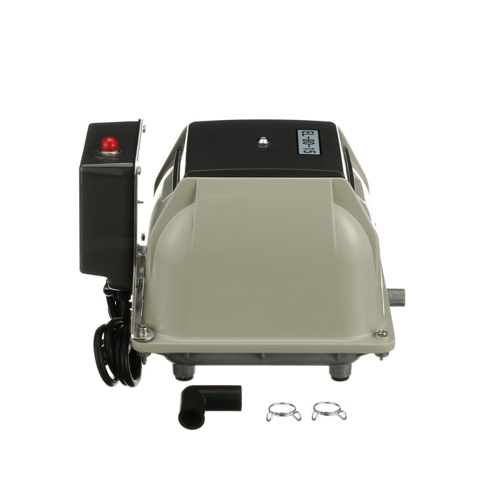 The Secoh EL-80-15-AL is known for its longevity and quietness. The Secoh EL-80-15-AL has a unique rib designed diaphragm that takes the shock away and absorbs more energy than a flat style diaphragm. This allows the air pump to have a long life. The Secoh EL-80-15-AL also has a thermal limiter built into the pump. This allows the contacts to separate when the temperature of the coils reaches 150°C. After the air pumps cools back down, it will start up again automatically.