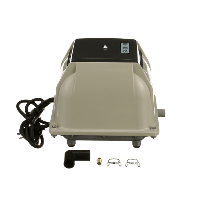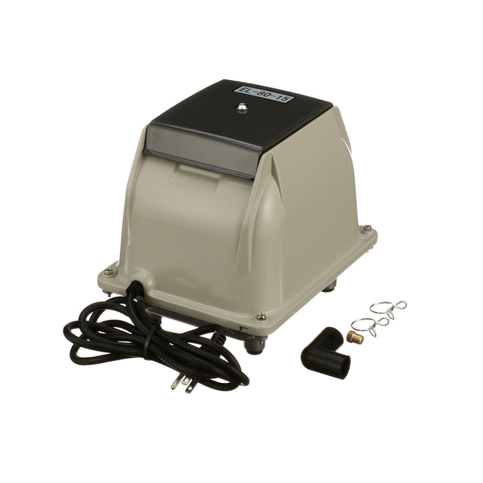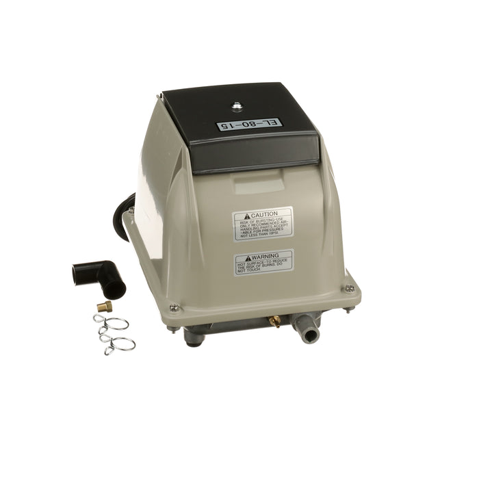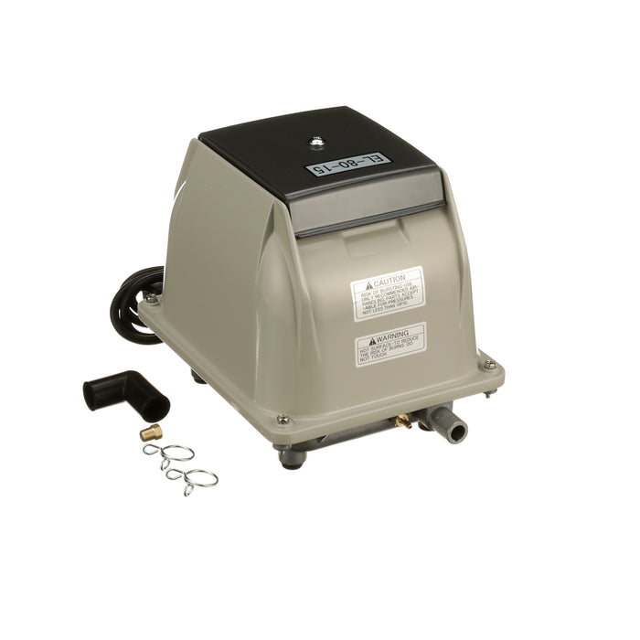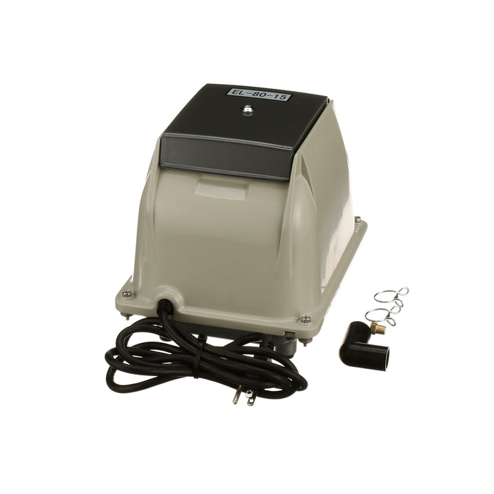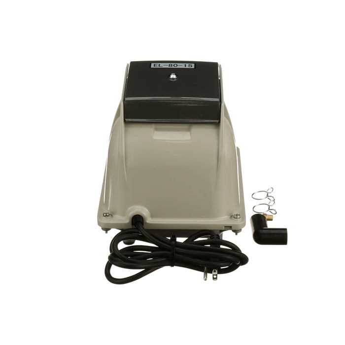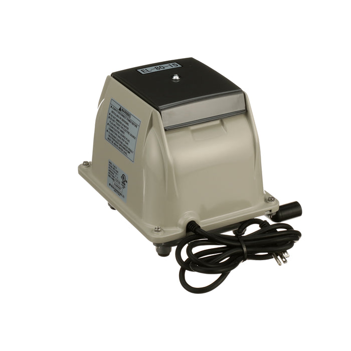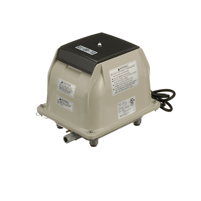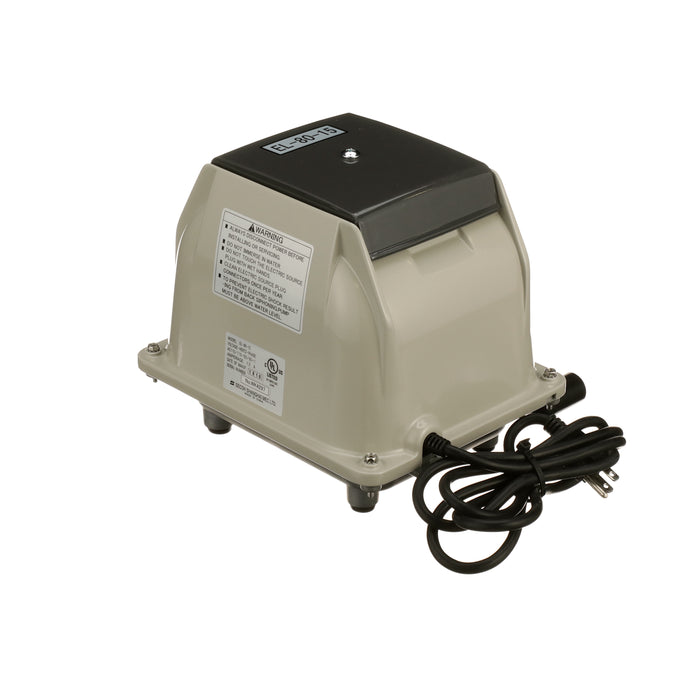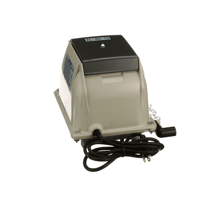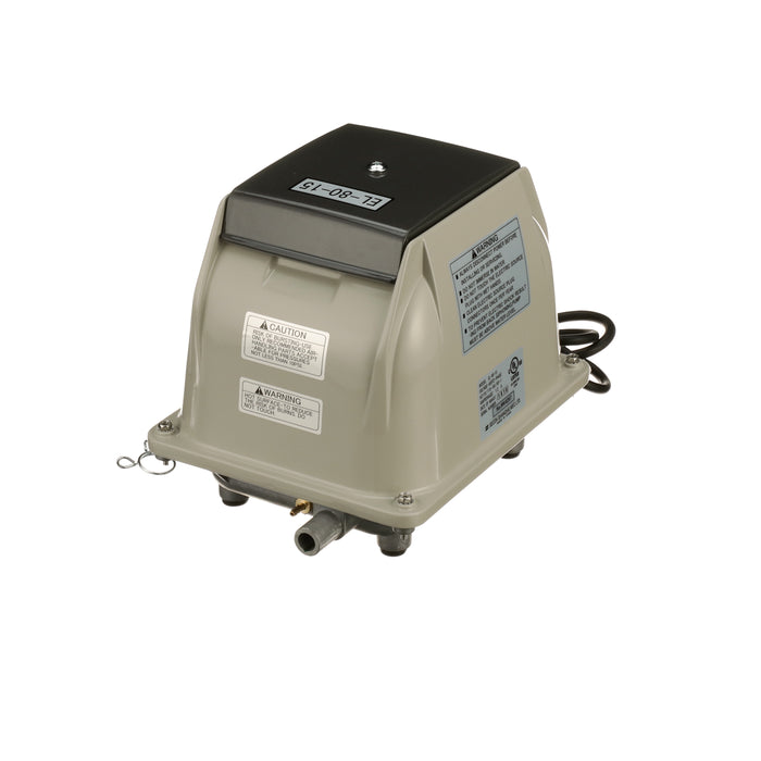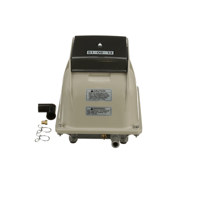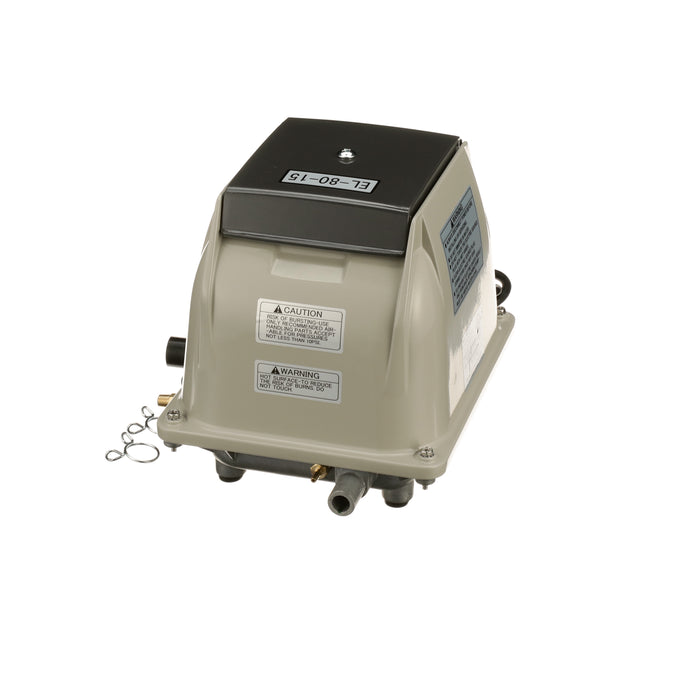 The Secoh EL-80-15 septic air pump is an excellent choice for 500-600 g.p.d systems with outstanding performance and longevity. Advantages; Integrated thermal limiter protection. EL series diaphragm pumps have a thermal limiter built into the pump. This allows the contacts to separate when the temperature of the coils reaches the temperature of 150°C. After the septic aerator has cooled off, it will start back up automatically. This usually only happens in a very old pump that needs to be replaced anyway.