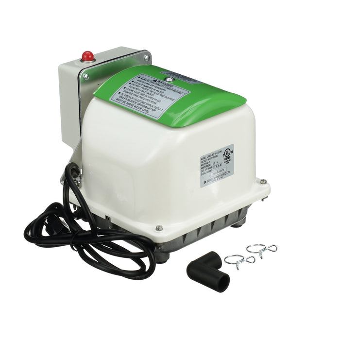 The Secoh JDK-80A holds the pump curve for longer and will produce more pressure than that of a other rare earth aerators. The attached alarm will alert you if their is low pressure of the diaphragm fails also. Secoh JDK-80A Septic Air Pump contains rare Earth-magnets, which enhance its efficiency, thereby allowing the Secoh JDK-80A- to run cooler while utilizing less power than its traditional counterparts. Efficient power usage allows for the Secoh JDK-80A to have an elongated life, often around 5 to 8 years with proper maintenance. The Secoh JDK-80A also generally requires fewer repairs and can be a more cost-effective option in terms of maintenance. This Secoh JDK-80A is intended as a replacement for an existing damaged or non-functioning Secoh JDK-80A or other 500 to 750 GDP aerobic systems. If your system is damaged beyond simply replacing the pump, we suggest contacting a professional.